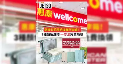 踏入2026年春季,惠康再度推出備受矚目的印花換購活動,今次聯乘美國知名行李箱品牌American Tourister,為顧客帶來CLEVA系列行李箱超值換購機會。活動由3月20日正式展開,提供三種尺寸選擇及惠康獨家限定色系,更可透過yuu積分實現免費換領,為即將到來的旅遊旺季做好準備。無論選擇傳統印花換購或積分兌換,均能以低至33折優惠價格入手高質素行李箱。