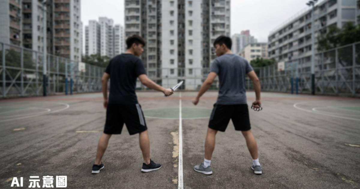 根據網上流傳的影片顯示,事件發生在秀茂坪一個籃球場內,兩名分別穿著黑衫和白衫的少年最初只是互相推撞,但情況迅速惡化為激烈的肢體衝突。雙方在推撞過程中失去平衡,隨即滾倒在地上展開纏鬥,現場氣氛極度緊張。就在眾人以為只是普通打架時,白衫少年突然從身上掏出一把摺刀,刀刃在陽光下閃閃發光,瞬間將整個衝突升級至危險水平。
