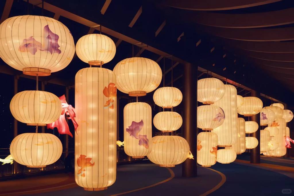 「游園賞燈」作為「海上升明月」的核心板塊,以非遺藝術與海洋元素交織出獨特的中秋氛圍。整個遊園路線貫穿螺旋雨鏈中庭、綠植階梯等特色景觀,讓觀眾在漫步中感受中式禪意與海滨藝術的完美融合。從靜態展覽到動態巡遊,從室內空間到户外海濱,這一板塊透過光影、紙藝與非遺文化的多重對話,為旅客打造層次豐富的節日體驗。