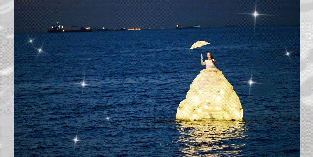 荷蘭國寶級環境戲劇《漂浮歌后》首次在太子灣畔亮相,由藝術家維克托琳・帕斯曼與女高音布麗吉特・范・哈亨聯手呈現。藝術家優雅懸浮於海面,以經典詠嘆調融合中國曲目,透過沉浸式聲光藝術構建東西美學對話。