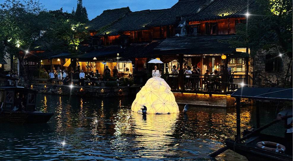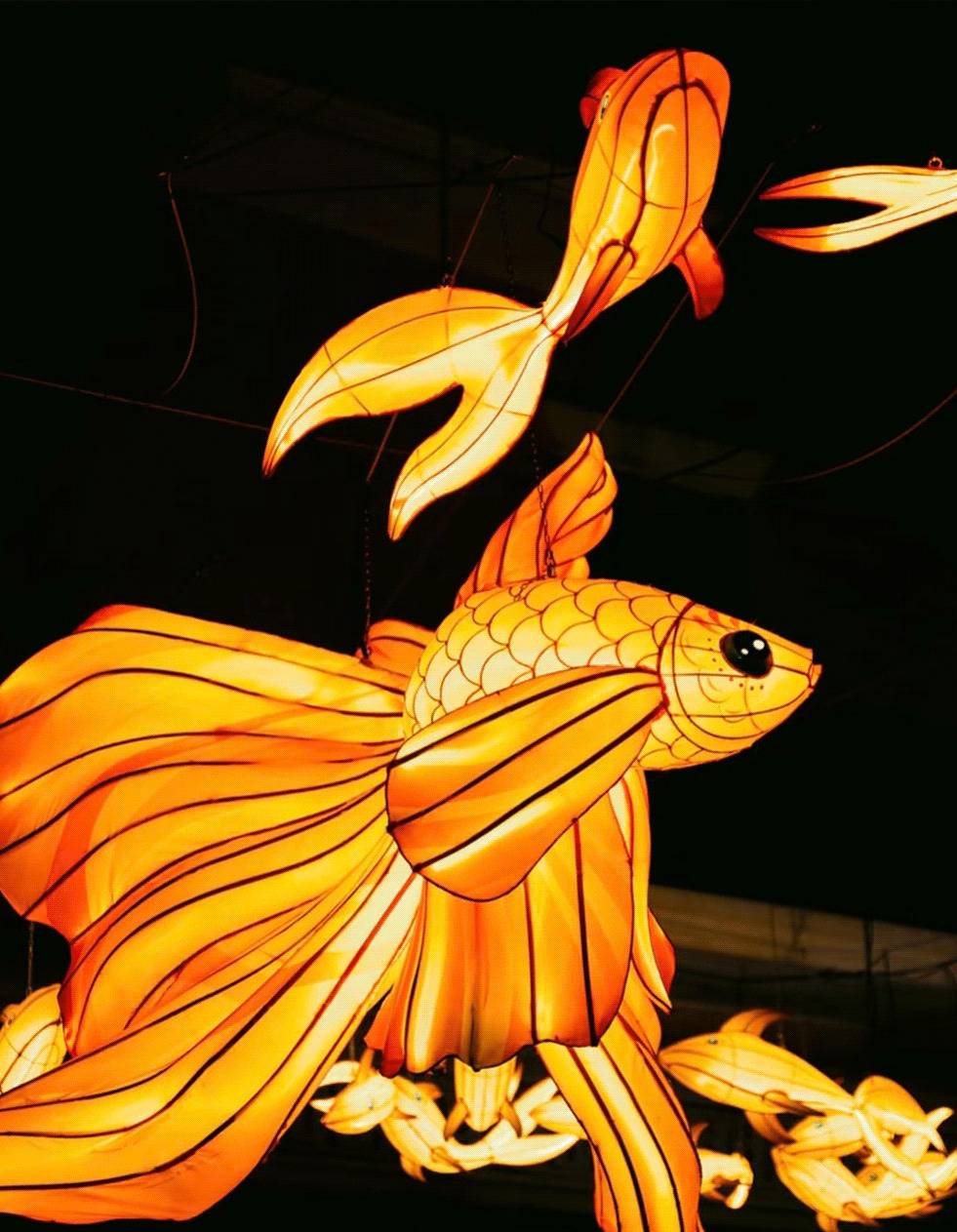 20米彩燈裝置融合中式禪意與海滨藝術,穿梭其中與燈中彩鱗相遇。此為國家級非遺文化”彩燈”跨越時光,在太子灣畔點亮星河,燈火璀璨如繁星墜海。