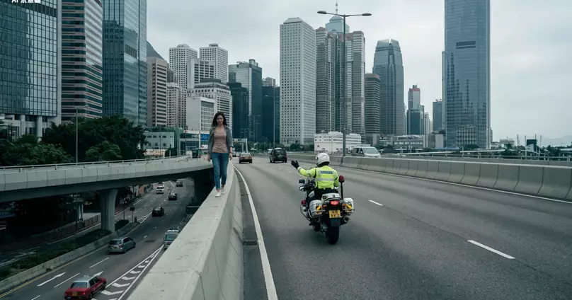 香港地少人多,交通繁忙,馬路如虎口係人都知,但竟然有人將行車天橋當成行人路?近日網上瘋傳一段驚險影片,一名女子竟然在中環花園道行車天橋的石壆邊緣行走,情況極度牙煙!一架鐵馬交通警駛經,立即上前處理,但事件的發展同結局,竟然令全港網民諗起一套經典電影!
