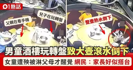 男童酒樓玩命轉盤出事!1壺滾水淋落細妹全身 父母「掛住做呢樣」釀悲劇惹公憤