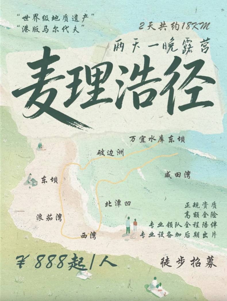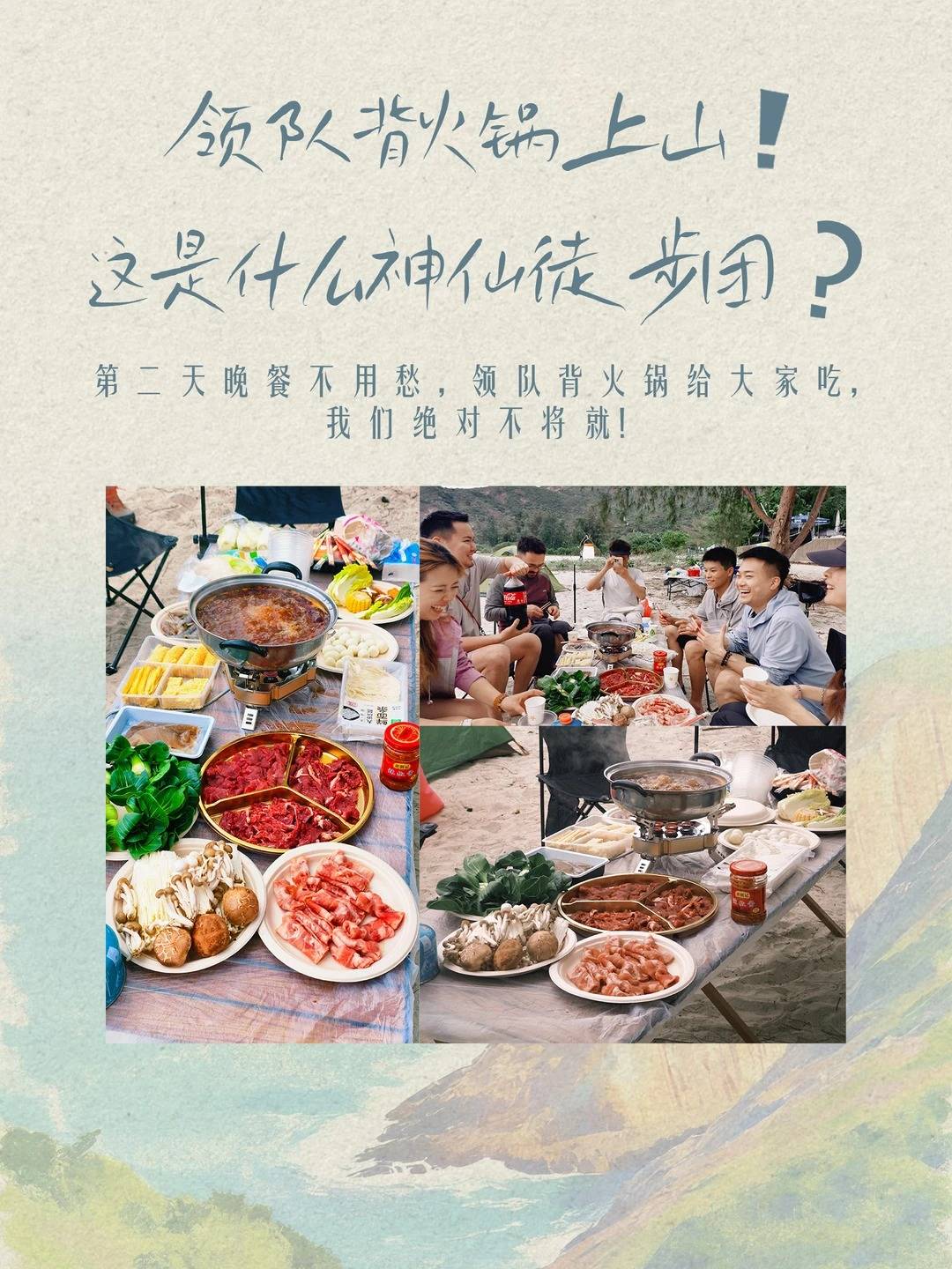 該戶外活動公司推出的「精緻露營」常規團四人即可成團,收費為888元人民幣(約1,019港元),若加錢至1,588元人民幣更可升級包單反相機跟拍。行程首日由福田口岸或港鐵大學站集合,經北潭凹走到咸田灣露營,翌日再挑戰西灣山至破邊洲,全程共約十八公里。費用包含往返商務車車資、二人一帳篷及膳食,但睡袋需自備或另行租用。雖然標榜提供「三菜一湯」,實際上晚餐多為由內地直送肥牛及海鮮的火鍋,翌日早餐則供應即食麵,負責人確認所有食材均由內地預先準備並帶入香港,再由領隊親自烹調。