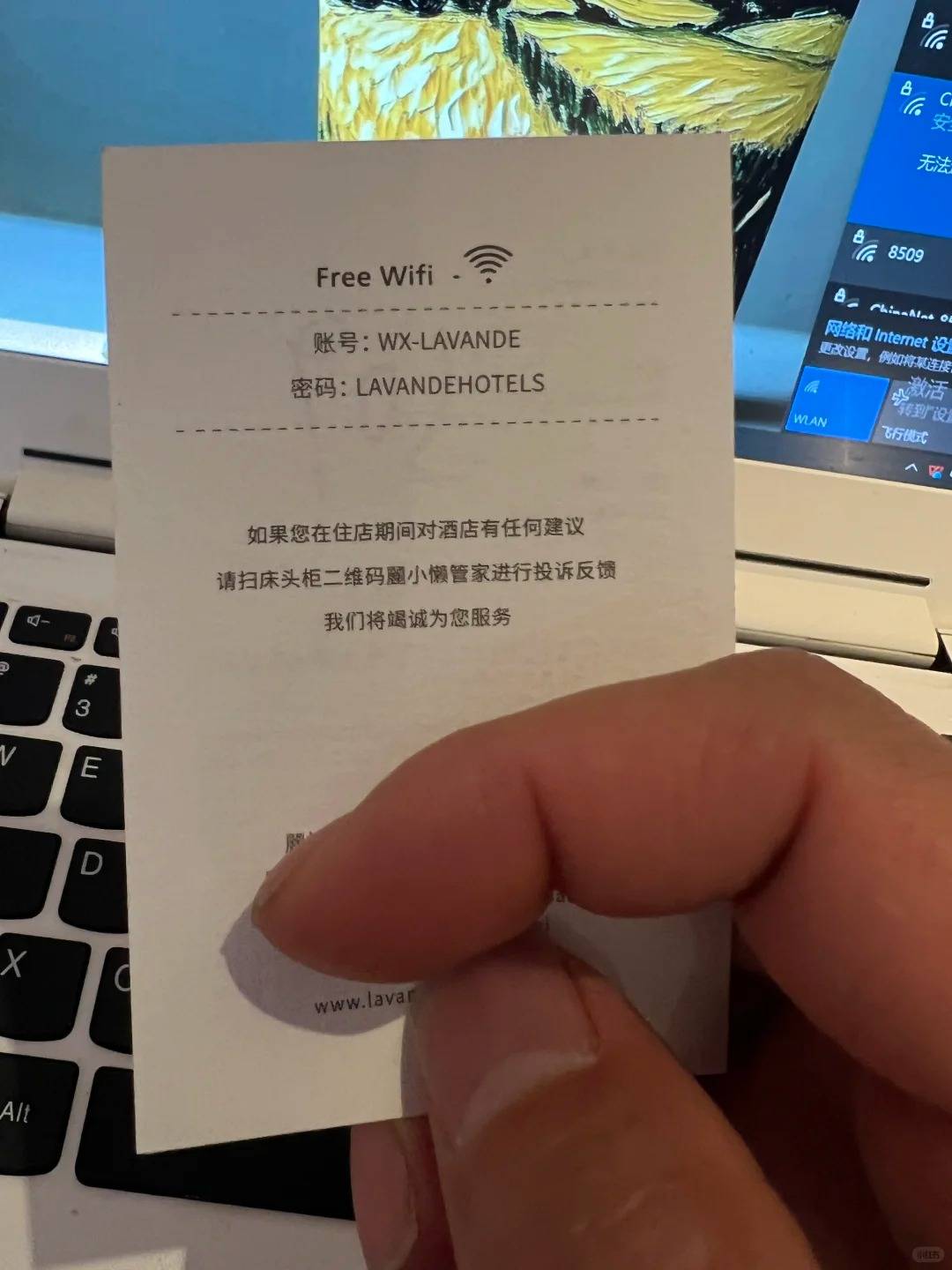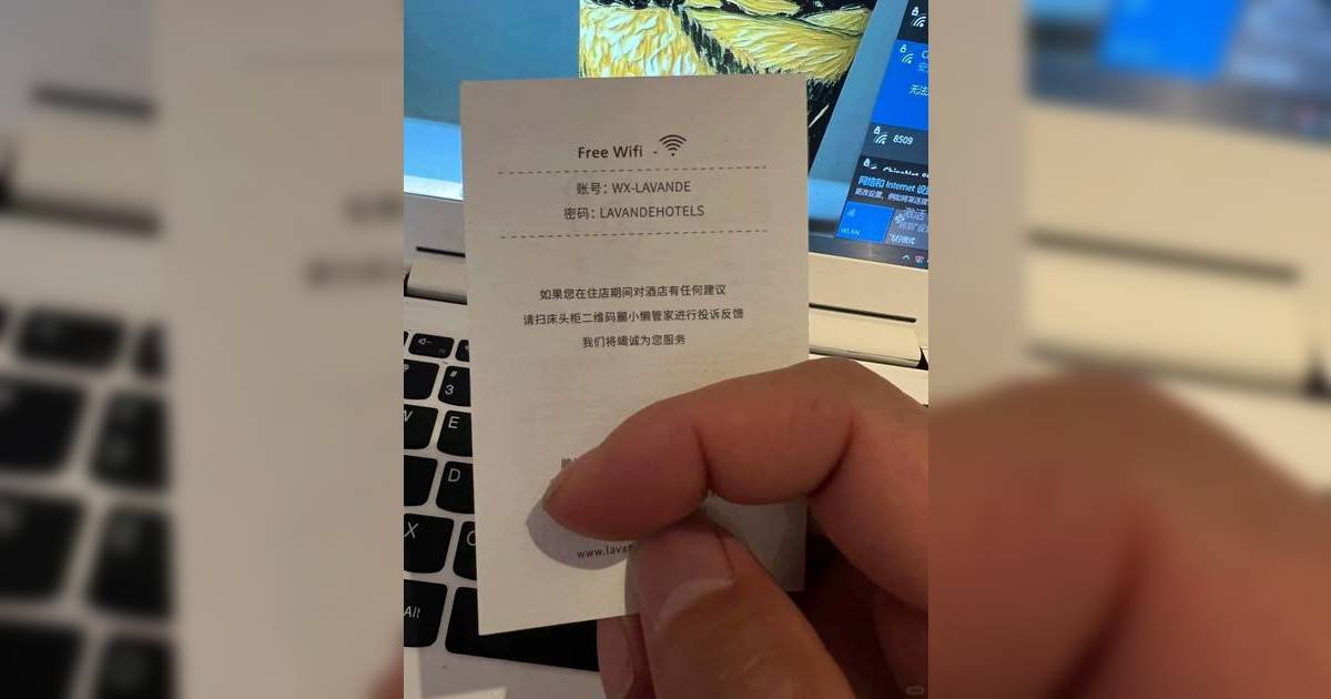 該名內地客在小紅書貼出「麗楓酒店(Lavande Hotels)」的 WiFi 密碼卡,上面顯示密碼為全大楷英文「LAVANDEHOTELS」。事主隨即大造文章,怒斥:「這 WiFi 密碼,到底有沒有站在消費者身上考慮?」他更直言自己出差遇過最多的密碼是「88888888」,其次是公司的電話號碼,認為酒店用一長串英文字母是刻意為難客人,甚至將此牽扯到酒店集團的競爭力上。