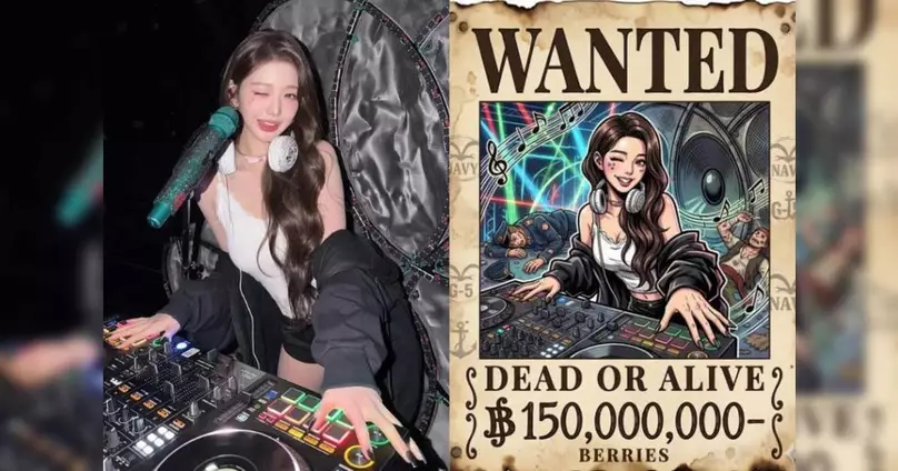 「請將這張照片中的人物轉換為《航海王》的懸賞單。人物需以尾田榮一郎標誌性的漫畫風格繪製,具有誇張的比例和充滿動感的表情。懸賞單本身是陳舊、泛黃的羊皮紙,邊緣有燒焦痕跡和咖啡污漬。頂部有粗體的「WANTED」字樣,肖像下方寫著「DEAD OR ALIVE」,底部則是貝里(Berries)單位的懸賞金額。背景有海軍標誌的水印。肖像應呈現捕捉人物動態的自信苦笑模樣。紙張角落有別針留下的針孔。」