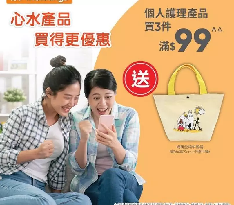 ✅個人護理產品△ 買3件滿$99† 送姆明全棉午餐袋 寬16x高19cm(不連手抽)