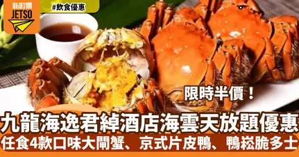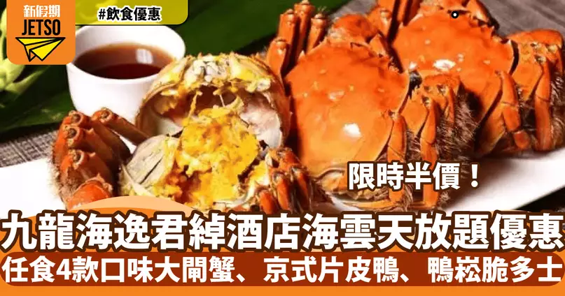 九龍海逸君綽酒店海雲天大閘蟹放題5折!任食4款口味大閘蟹、京式片皮鴨、鴨崧脆多士