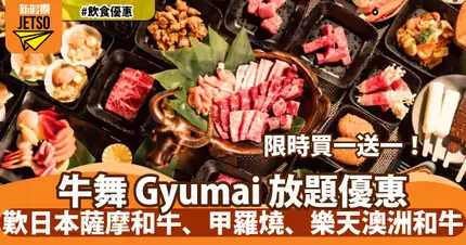 KKday與銅鑼灣「牛舞 Gyumai」再度合作,推出和牛燒肉及涮涮鍋放題快閃優惠,設有買一送一及第二位半價,折後人均消費低至HK$216起,即可無限品嚐日本薩摩和牛、樂天澳洲和牛、甲羅燒及多款高質肉品海鮮!立即查看下方優惠詳情,準時開搶!