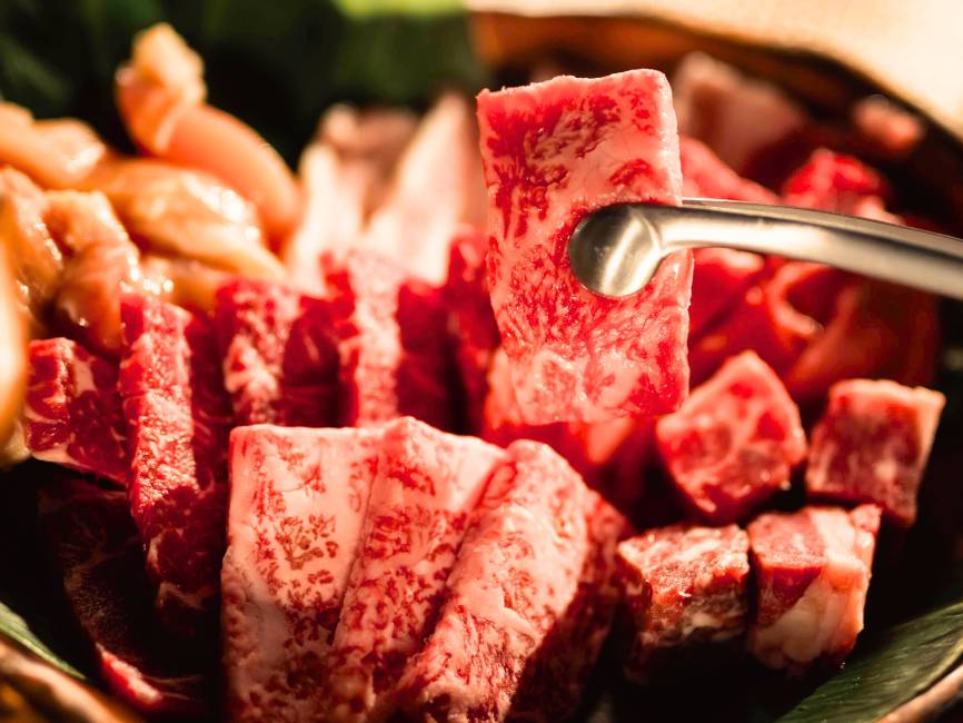 - 定量拼盤:薩摩牛特上西冷、薩摩牛牛肩胛薄切、薩摩牛牛腹骨肉、薩摩牛牛胸腹肉、是日稀少部位 2 款