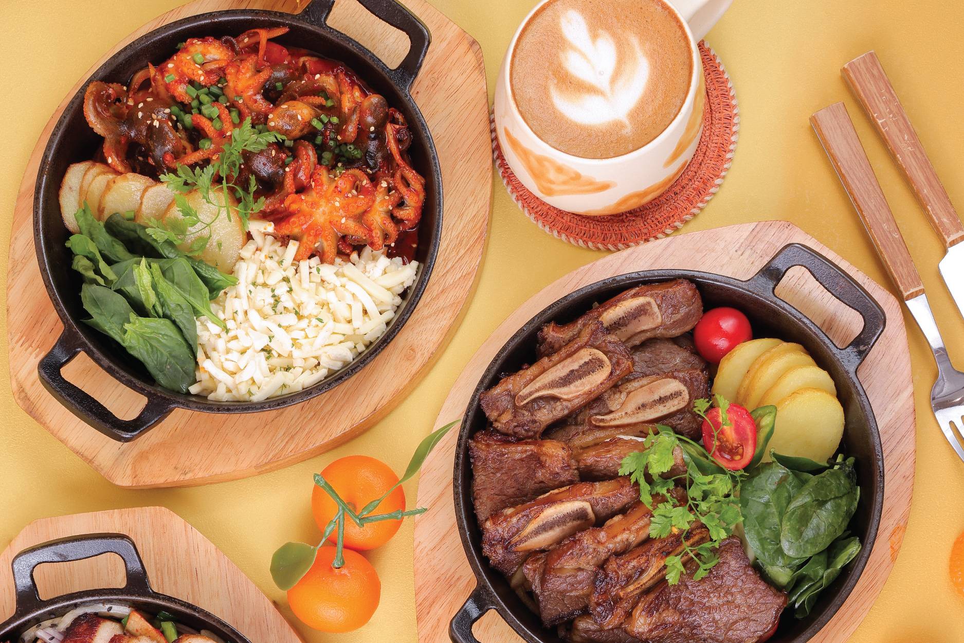 肉食獸必點招牌「肉類盛宴」,一盤有齊煙燻牛胸肉、燒豬肋骨、手撕豬肉同兩款惹味香腸,啖啖肉汁噴發,煙燻味極濃郁!仲有必試超搶Fo嘅「烤牛骨髓」,油潤骨髓配埋紅酒燴和牛、洋蔥醬及無花果,口感極致邪惡,配埋多士食,層次勁豐富!驚喜之選仲有「非洲雞」,火候控制得啱啱好,肉嫩Juicy,帶點異國微辣香料風情,非常惹味。甜品一定要嗌「煙燻拖肥香蕉」,香蕉加入焦糖烹煮形成脆皮,再以木頭同薰衣草進行燻製,香氣層次十足,配埋拖肥醬同雪糕,冰火交融令人一試愛上!