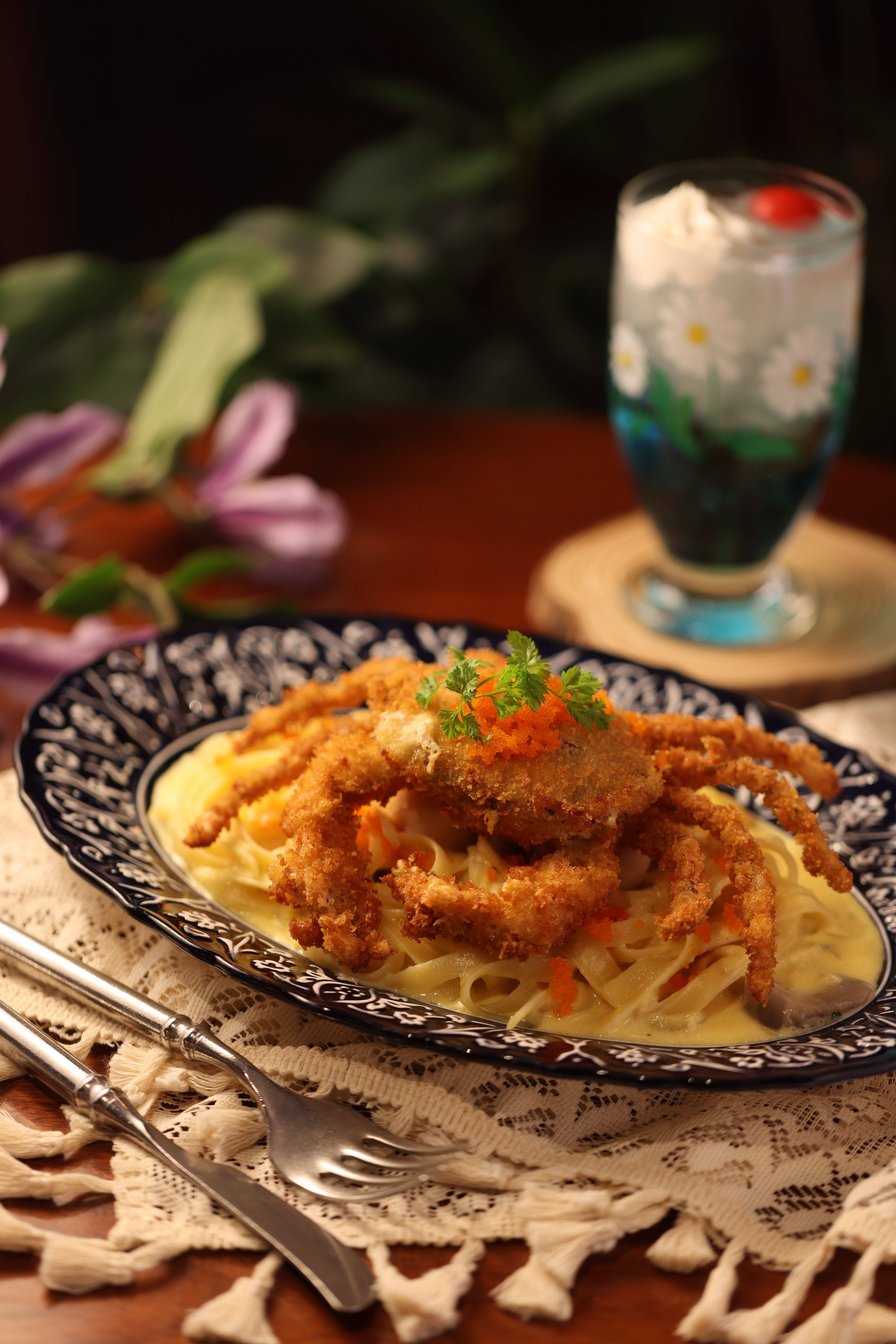 除咗飲品,呢度嘅甜品同輕食亦非常有水準。牛角酥窩夫絕對係必點,選用法國直送嘅牛角酥麵糰新鮮烘製,窩夫散發出濃郁牛油味,口感厚實酥脆,幸福感爆燈。最推薦提拉米蘇口味,將咖啡香氣融入奶油,層次豐富又唔會過甜。仲有意粉都相當唔錯,例如「蒜蓉海鮮意粉」就結合咗香濃蒜味同鮮甜海鮮。想試試日西合璧嘅輕盈口味,則可以選擇「煙肉忌廉意粉」,口感滑順又唔油膩。