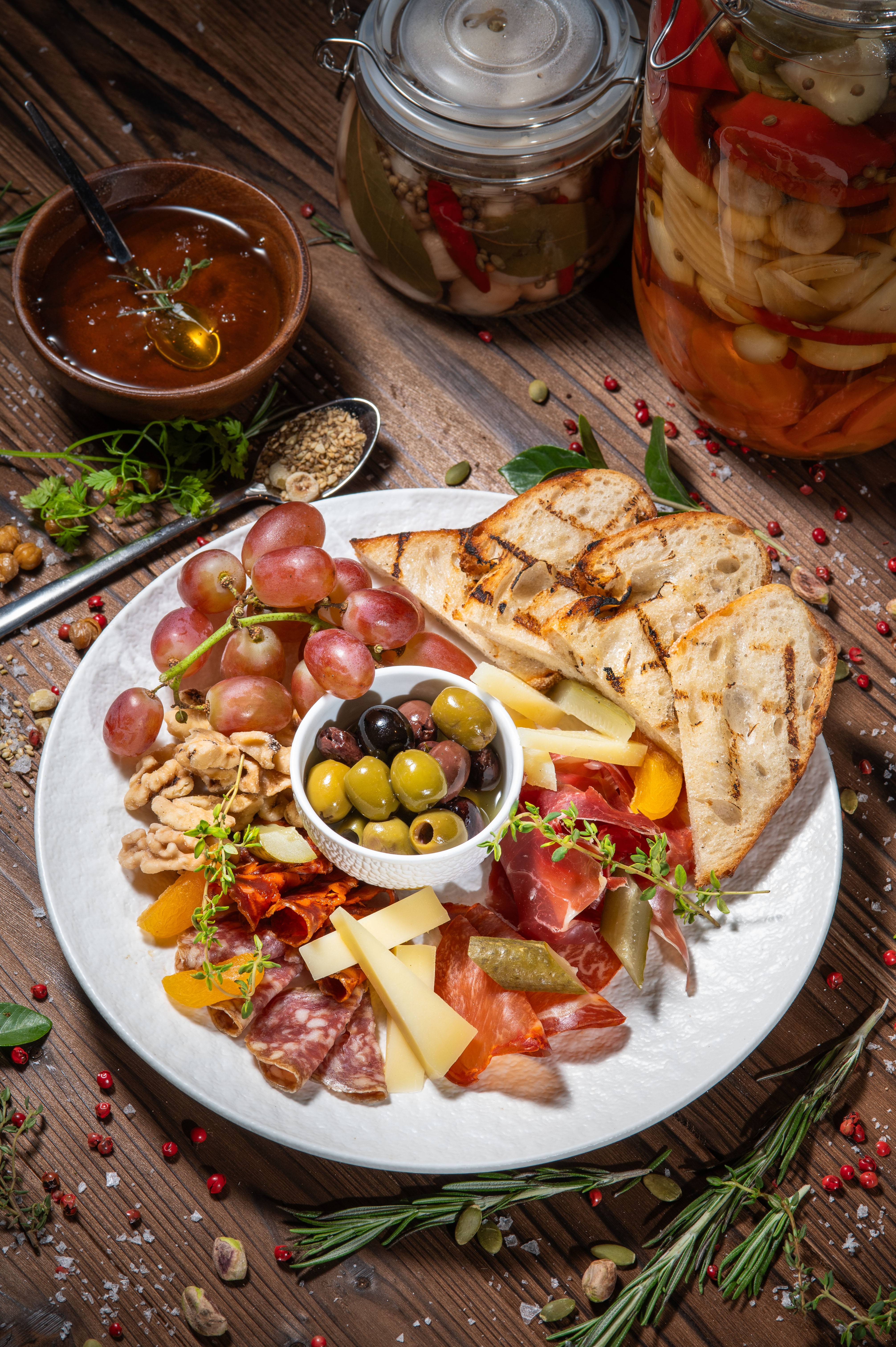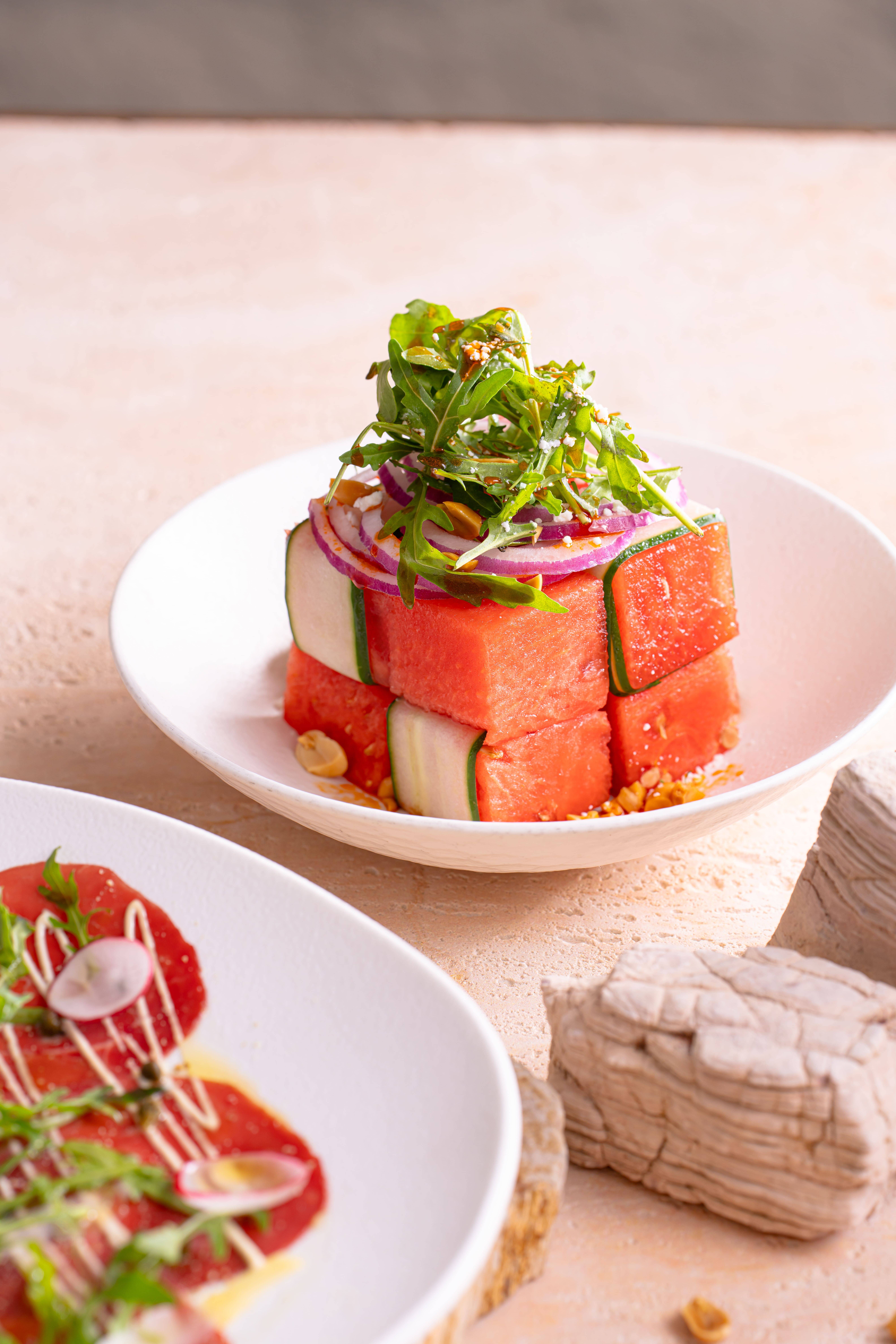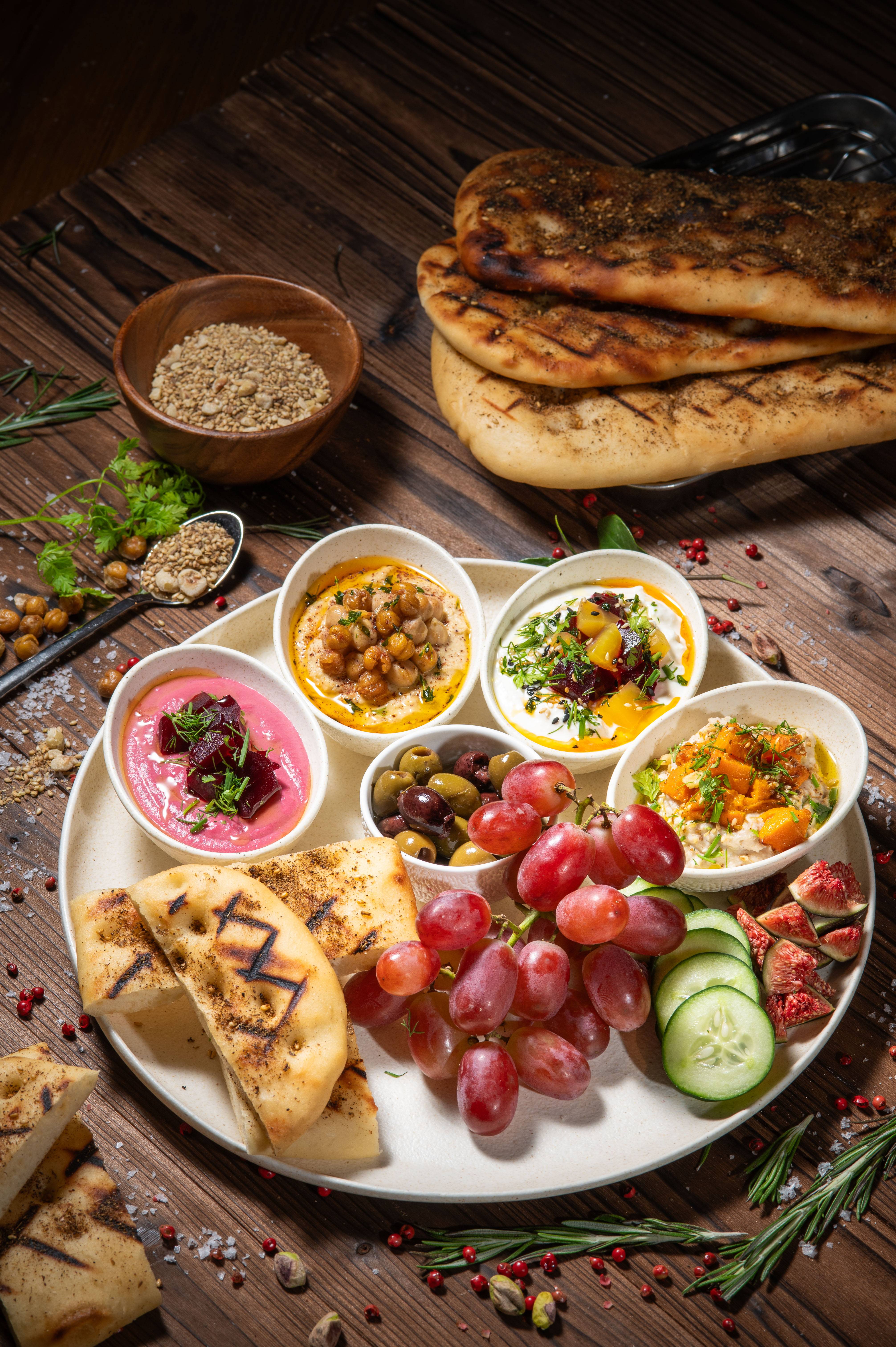 呢度主打地中海風情美食,每道菜都充滿驚喜。首推色彩繽紛嘅「地中海小食拼盤」,一盤有齊鷹嘴豆泥、中東茄子、紅菜頭等抹醬,同埋菲達羊奶芝士,點埋烤薄餅食非常開胃。鍾意Fusion菜嘅必點「和牛他他」,特別加入布格麥增加咬口,配埋香脆手工薯餅,層次感極強。仲有鹹香嘅「精選西班牙伊比利亞火腿芝士拼盤」或者嫩滑多汁嘅「烤土耳其沙威瑪雞肉串」都係人氣之選,啱晒同朋友Share餸酒。美食當前又點少得美酒相伴?招牌Cocktail「Rooftop Garden」—— 紫色同黃色嘅夢幻漸層好似將「夕陽」裝入酒杯咁,入口酸甜清爽,打卡度爆燈!而Mocktail就推薦採用紅肉火龍果同檸檬汁結合而成,清爽嘅「Red Star」。