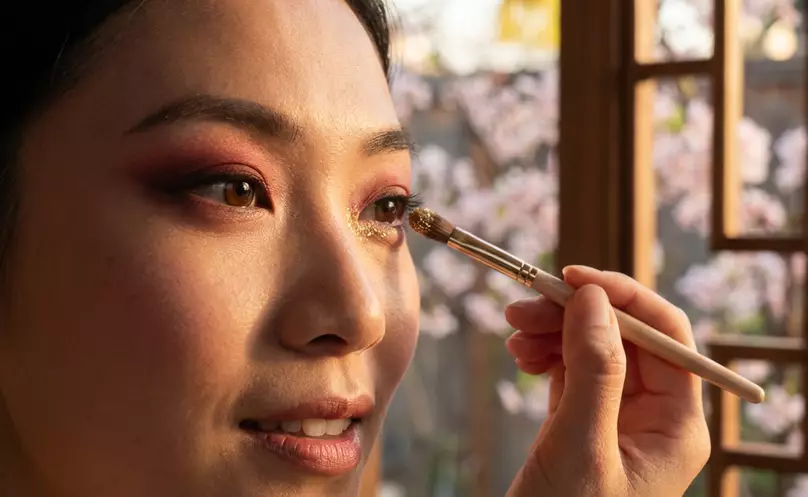 想發個新年財?咁就一定要有金色加持!金色自古以來就是財富與貴氣的象徵。在眼妝上,可以於眼皮中央、眼頭或臥蠶位置,輕輕點綴上細緻的金色或香檳金色亮片。這一步有如畫龍點睛,不僅能瞬間提亮眼神,打造楚楚可憐的無辜感,更有「點亮財位」、吸納財氣的好意頭,讓你打麻雀都手氣順啲!