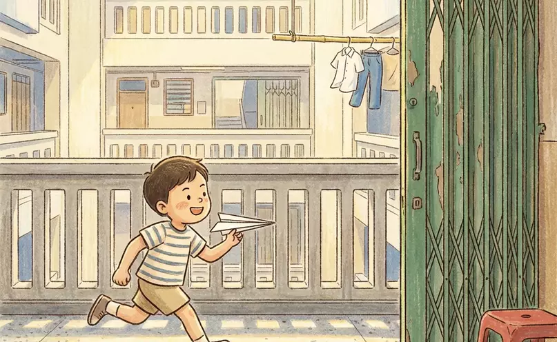 對於在井型公屋長大的孩子來說,那條環形的走廊就是他們的專屬遊樂場。放學後,孩子們成群結隊地在走廊上追逐嬉戲、「跳飛機」、「玩何濟公」,笑聲與腳步聲在天井中迴盪,顯得格外熱鬧。雖然有時會被樓上樓下的大人喝斥,但這條長長的走廊無疑是他們童年最自由奔放的樂園。家長們也放心讓孩子在走廊玩耍,因為左鄰右里都會幫忙「睇住」,形成一個天然的托兒所。