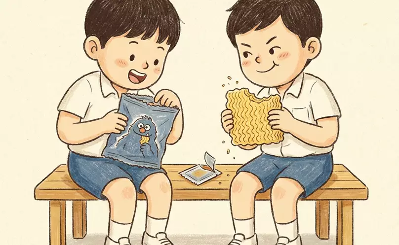 在香港的零食版圖中,媽咪麵佔有不可動搖的地位。它與時興隆、旺旺仙貝、百力滋等零食一樣,是構成我們童年回憶的重要元素。它不僅是士多、辦館、學校小食部的標配,更是生日會、旅行、宿營時必備的分享零食。一包小小的媽咪麵,象徵著無憂無慮的歲月和簡單純粹的快樂。