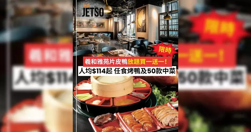 羲和雅苑片皮鴨放題|買一送一優惠詳情:午市晚市任食選擇