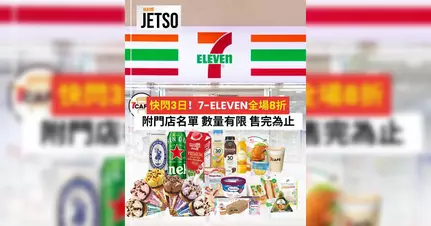 7-Eleven全場8折快閃3日優惠!買滿$100享8折 教你免費拎$55現金券