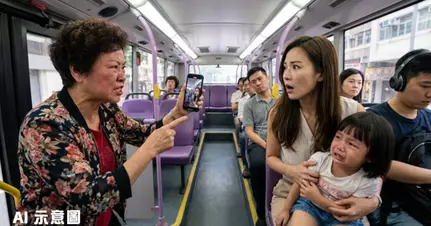 九巴車廂內一場激烈爭吵引發全城熱議,一名大媽因上車時被小童阻路,與港媽及其家人爆發罵戰。事件中大媽怒嗆「我兒孫滿堂」的金句迅速在網絡瘋傳,而雙方你來我往的對罵內容更是令網民議論紛紛。這場公共交通工具上的衝突,最終演變成一場關於公德心與育兒觀念的網絡大辯論。