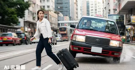 拖篋女衝出馬路險象環生 的士司機急煞阻悲劇