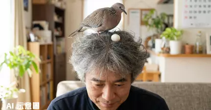 日本一名男子平日會救助被遺棄或受傷無法返回野外的鴿子,但最近家中一隻身體殘障的斑鳩卻做出令人啼笑皆非的舉動。這隻名為小凜的斑鳩因為不會築巢,竟然將飼主父親凌亂的頭髮當成現成鳥窩,直接在頭頂上產蛋。當飼主發現父親髮絲間卡著一顆鳥蛋時,才恍然大悟原來小凜已經在頭頂上待產了整整3小時。