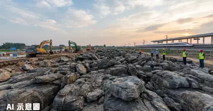 山東省泰安市寧陽縣高鐵站地盤施工期間,工人意外挖出一片約5億年前形成的古老石海,面積相當於3個足球場大小。這片石海由數不清的石頭組成,形態各異且層疊錯落排列,遠望如海浪翻湧般壯觀,景象猶如千里江山圖般震撼。這個意外發現立即引起各界關注,當地政府已採取保護措施並派遣專家團隊實地考察。