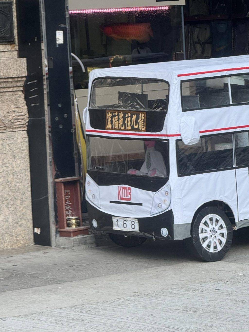 從網上流傳的照片可見,這幢巨型紙紮屋製作非常精緻,樓頂掛上「大埔宏福苑」招牌,橙色外牆配上藍白窗戶,不但設有園景,而且有一輛紅色私家車,甚至有遊樂場包括滑梯等設施。有網民更上載其他相關照片,顯示現場還有兩輛紙紮雙層巴士,其中一輛白色車身,路線牌顯示「宏福苑往九龍」,另一輛黃色巴士顯示「宏福苑往香港」,兩輛巴士車牌號碼均是「168」,甚至設有紙紮司機,製作之用心令人驚嘆。