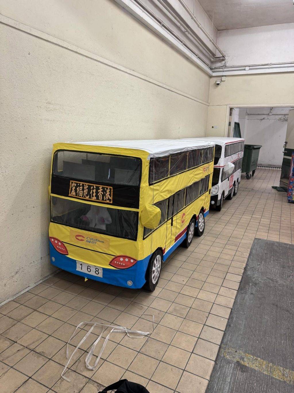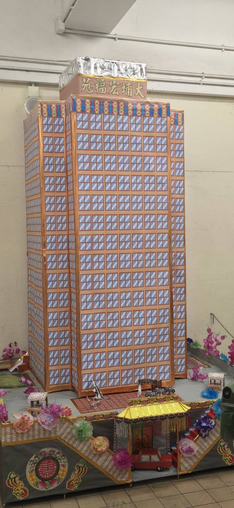 巨型紙紮屋製作精緻 樓頂掛上宏福苑招牌