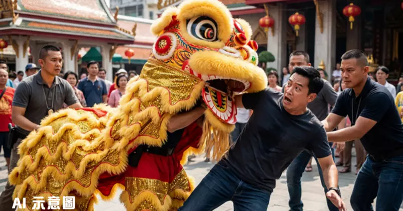 2月18日大年初二當天,曼谷警方派出多名警員組成臥底「舞龍舞獅」隊伍,在疑犯經常出沒的暖武里府寺廟附近展開行動。根據警方發放的片段顯示,搖著獅頭的警員在表演過程中突然撲向目標男子,隨即有多名警員上前協助制服疑犯。整個過程中,該名男子完全沒有察覺危險正在靠近,直到被警員撲倒才驚覺自己已經落網。這種結合傳統節慶元素的執法方式,讓原本緊張的抓捕行動變得既有創意又有效率。