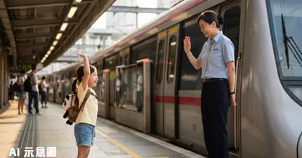 按照港鐵的標準作業程序,女車長需要下車檢查所有車門及閘門是否妥善關閉。就在她完成檢查準備重新上車的瞬間,站在月台車頭位置的小女孩隔著閘門揮手大聲喊「拜拜」。女車長沒有匆忙趕路,反而轉身向小女孩揮手回應,展現出超越職業要求的溫暖人情味。這個互動讓港爸忍不住讚嘆「呢個女車長勁nice」。