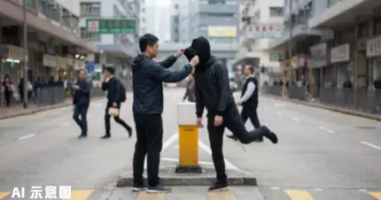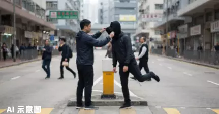葵涌工廠區近日發生一宗離奇街頭衝突事件,一名戴著黑色頭套的神秘男子與身穿風褸制服的男子在安全島上「比武較量」,過程中頭套男更擺出「金雞獨立」姿勢挑釁對方。當風褸男成功抓脫對方頭套時,竟然發現對方戴著雙重頭套,真面目依然神秘莫測。整個過程被路人拍攝並上傳至網上,引起大量網民熱烈討論,事件的前因後果更令人意想不到。