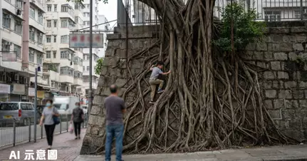 有網民在facebook群組「西環變幻時」上載一張現場照片,畫面顯示一名男童正手腳並用,踩住石牆樹的樹根,右手同樣抓住樹根,疑似正在沿著石牆爬行。更令人咋舌的是,旁邊竟然有一名女子在場,懷疑是男童的家長,但該名女子卻在低頭,似乎對男童的危險行為視若無睹。樓主苦笑形容男童猶如「蜘蛛俠」般攀爬,但這種行為不但對珍貴的古樹造成潛在傷害,更可能危及男童自身安全。