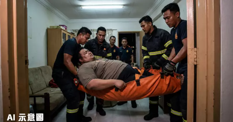 馬來西亞一名40歲男教師因體重高達350公斤,在浴室內突然倒地無法起身,妻子發現後立即報警求助。這場救援行動動用了8名消防員,耗時超過1小時才成功將他送往醫院,而背後原因更是令人意想不到。