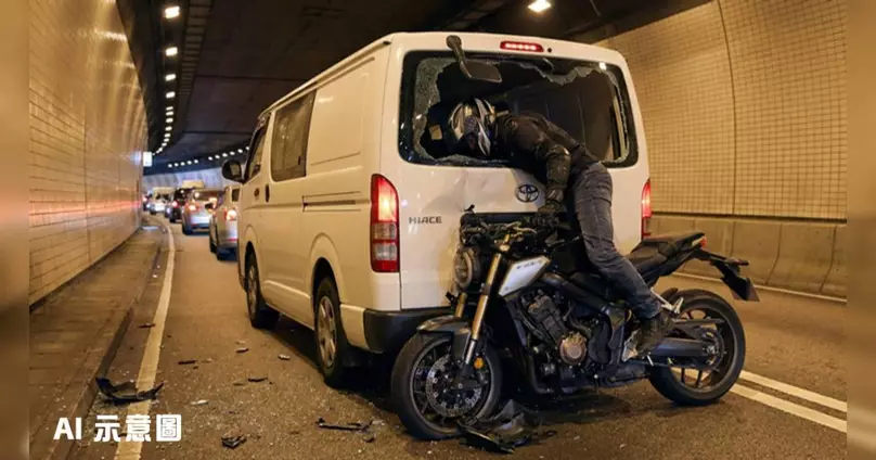 車CAM直擊 – 大老山隧道電單車司機一桿入洞!從後猛撞貨Van 直接入箱