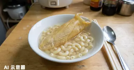 工人姐姐的創意料理再次成為網絡熱話!有網民近日在社交平台分享一張令人哭笑不得的照片,只見一碗通粉湯麵中竟然孤零零地放著一條完整未切的花膠,而湯底更是清澈見底的清水。這道「高級」料理的奇特搭配立即引起網民熱烈討論,有人更笑稱這是「最富貴同最窮嘅食材放埋一碗」的藝術品。