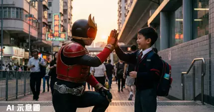 港鐵站內出現一位神秘Coser,每日收工時間都會在牛頭角站出口附近為路人提供免費擁抱和合照服務。這位扮演假面騎士Kuuga的熱心人士,用自己的方式為匆忙的都市人帶來溫暖,但他的真實身份和動機卻令人好奇。