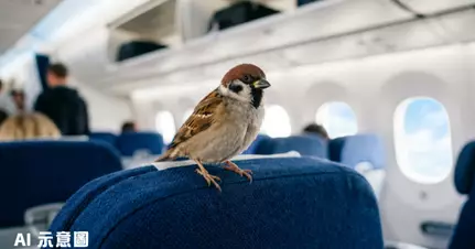 根據網民分享,事發於國泰航空CX452班機,原定由香港飛往高雄的航班因為一隻麻雀闖入機艙而延誤35分鐘。從影片可見,這隻小麻雀在機艙內飛來飛去,似乎對這個密閉空間感到困惑,不斷在座位上方盤旋。乘客們只能坐在位置上,眼睜睜看著這場意外的「航空表演」,等待專業人員處理這個突發狀況。