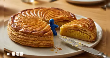 國王批(Galette des Rois)是法國傳統新年糕點,源自法國人在每年1月6日天主教主顯節前後享用的圓餅狀蛋糕。這款糕點由千層酥加入杏仁奶油內餡烤焗而成,經歷數百年的文化傳承。埋藏在批內的瓷偶象徵好運的來臨,根據昔日習俗,抽中瓷偶的人將擔當「國王」的角色,寓意傳承幸運與祝福,是極具意義的文化傳統。