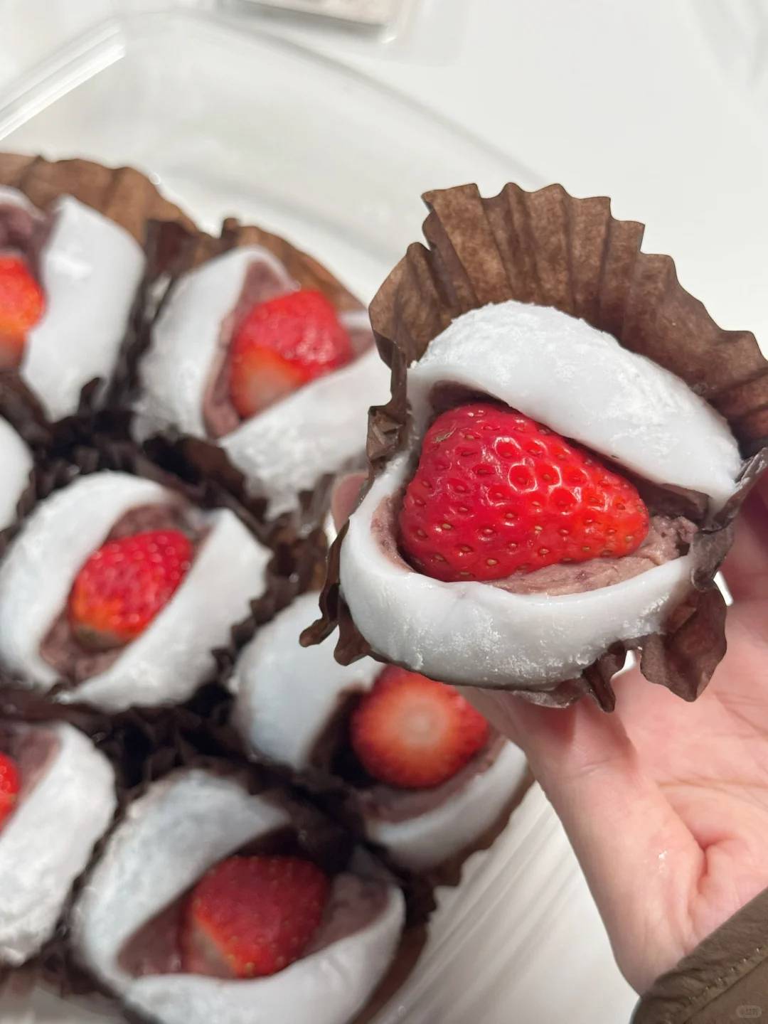 甜品區推薦:草莓羅馬生乳麵包以氣孔鬆軟的麵包體為基底,搭配清爽細膩的奶油與清甜脆口的整顆草莓,黃油香氣突出且甜度適中,多食不膩。同場推薦紅豆大福,內餡飽滿且帶有紅豆顆粒口感,麻薯皮軟糯綿密,整體甜度克制,風味層次豐富,值得一試。