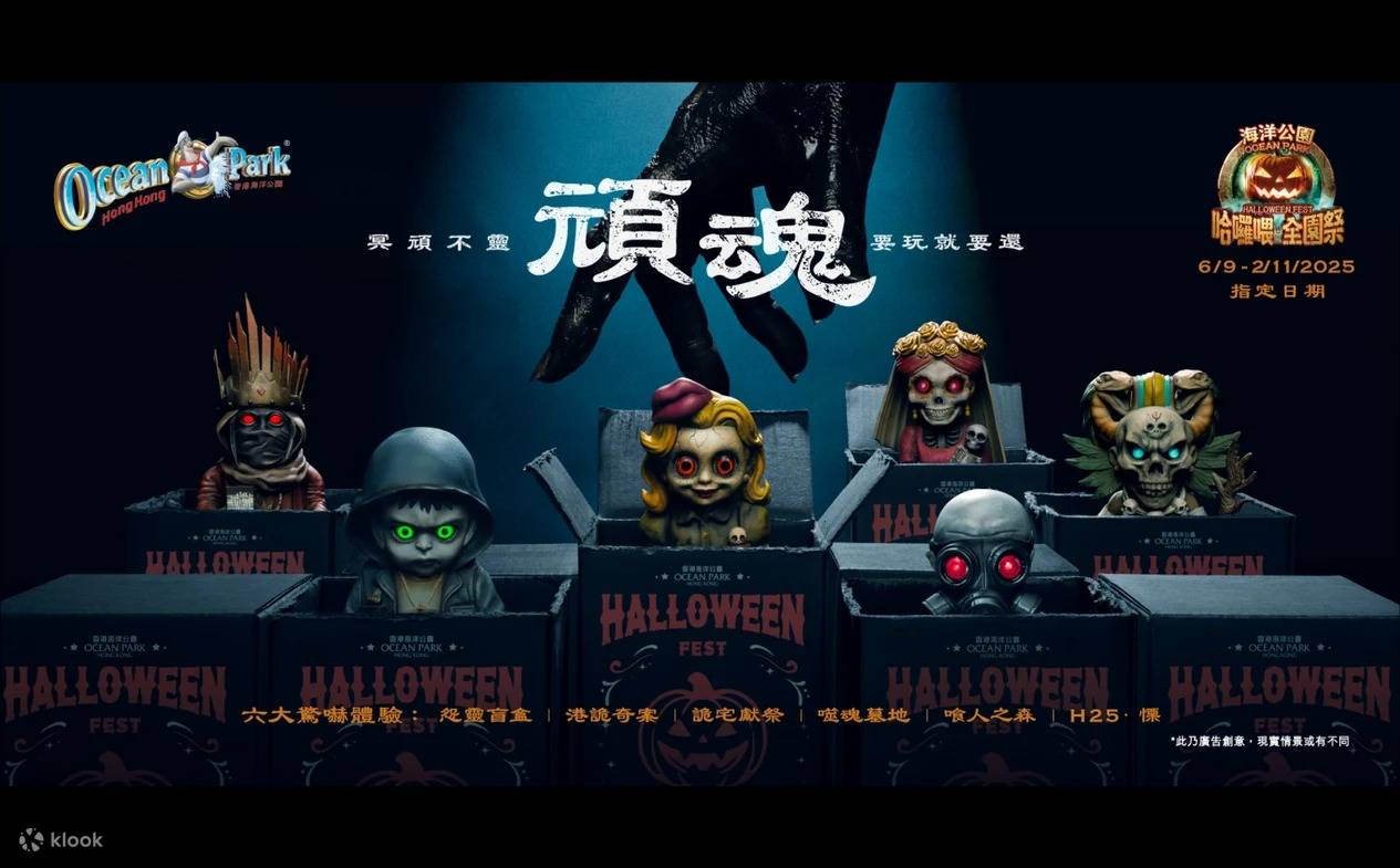 今年海洋公園哈囉喂頑魂當道,設有六大驚嚇體驗等你開箱,直擊最深層的未知恐懼!由被詛咒的「怨靈盲盒」、重啟調查的「港詭奇案」,到挑戰官能極限的「H25.慄」實驗室,每個場景都讓你尖叫失聲。更有決定你生死的「詭宅獻祭」、血腥獵殺的「喰人之森」及陰森恐怖的「噬魂墓地」,準備好迎接有嚇無還的驚喜體驗!