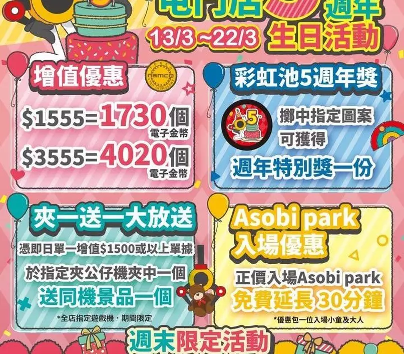 #namcohk #日本景品 #週年慶 #夾公仔 #遊戲機中心 #彩虹 #生日活動 #優惠