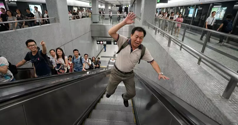 港鐵站上演爆笑一幕!港爸扶手梯狂跳3次執手機 結局神展開網民睇到O嘴