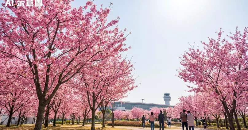 機場島櫻花園粉紅滿開成打卡熱點