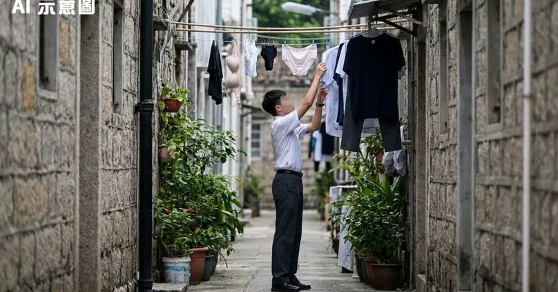 片段顯示,事發於日間時分,一名穿藍白色外套、孭深灰色書包的男中學生戴著口罩現身。該名學生先是左顧右盼視察周圍環境,確認安全後便縱身一躍,將懸掛在高處的女性胸圍連衣架一併扯下,隨後若無其事地離開現場並收起「戰利品」。時隔約半分鐘後,該男學生竟然去而復返,目標明確地快步走到同一位置。只見他稍作預備後再度跳起,成功摘下一條晾曬在高處的白色底褲。男學生得手後仍不滿足,連續跳起試圖將更多衣物摘下,最終成功偷取另一條疑似底褲的白色衣物才心滿意足離開。