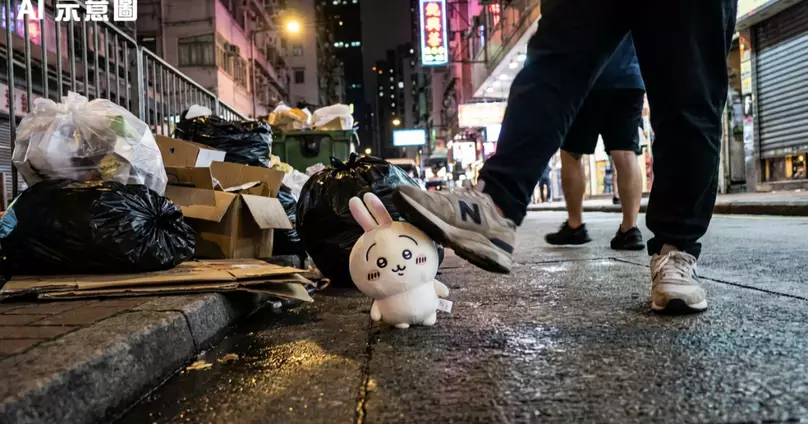 至少5名港男垃圾站旁圍踢兔哥公仔