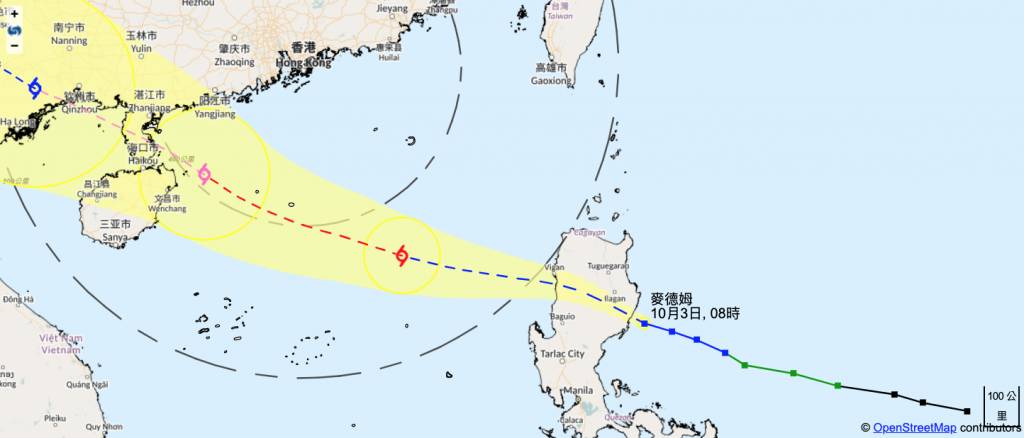 追蹤「麥德姆」移動路徑 橫過呂宋後增強直指廣東