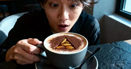 北京萬物博物館近日推出一系列昆蟲主題飲品,其中最矚目的莫過於「蟑螂粉咖啡」。從網上流傳的相片可見,這杯咖啡的表面鋪滿一層深色的粉末,正是由藥用級別的蟑螂磨製而成,上面更放了幾條烘烤過的大麥蟲作點綴,視覺衝擊力十足。這杯售價45元人民幣的咖啡,據稱還加入了海苔粉提味,配搭優質咖啡豆基底,形成一種難以想像的風味組合。雖然賣相嚇人,但每日仍有十多杯的銷量,主要吸引追求新奇體驗的年輕人光顧,不少人抱著「來都來了」的心態一試,但帶同小孩的家庭客則敬而遠之。