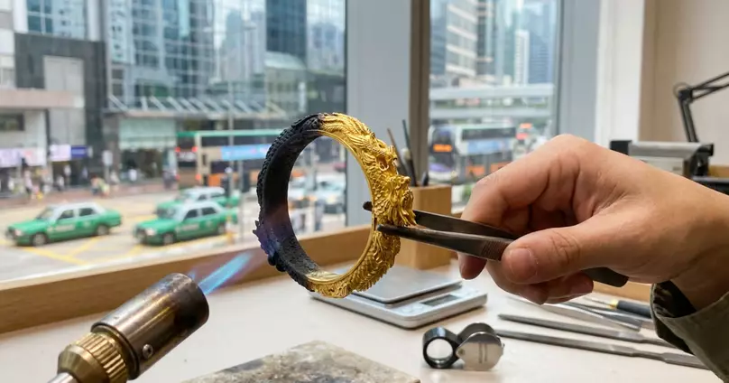 金價飆升引發全城賣金熱潮,金行門外日日大排長龍!HOY TV節目《一線搜查》日前報導,金行負責人江先生分享了一個令人心酸的個案。有位女士拿著一個非常精美的首飾盒前來,裡面裝著全套結婚時奶奶所送的龍鳳鈪、豬牌鏈等金器,希望趁高價賣出。江先生憶述:「我拿上手已經覺得有些奇怪」,在徵得對方同意後,他決定進行最直接的「過火測試」。俗語有云「真金不怕紅爐火」,但當火槍一燒,飾盒內的金器竟迅速變黑,證明全是假貨。該名女士目睹珍藏嫁妝變成廢鐵,當場心碎,場面令人唏噓。