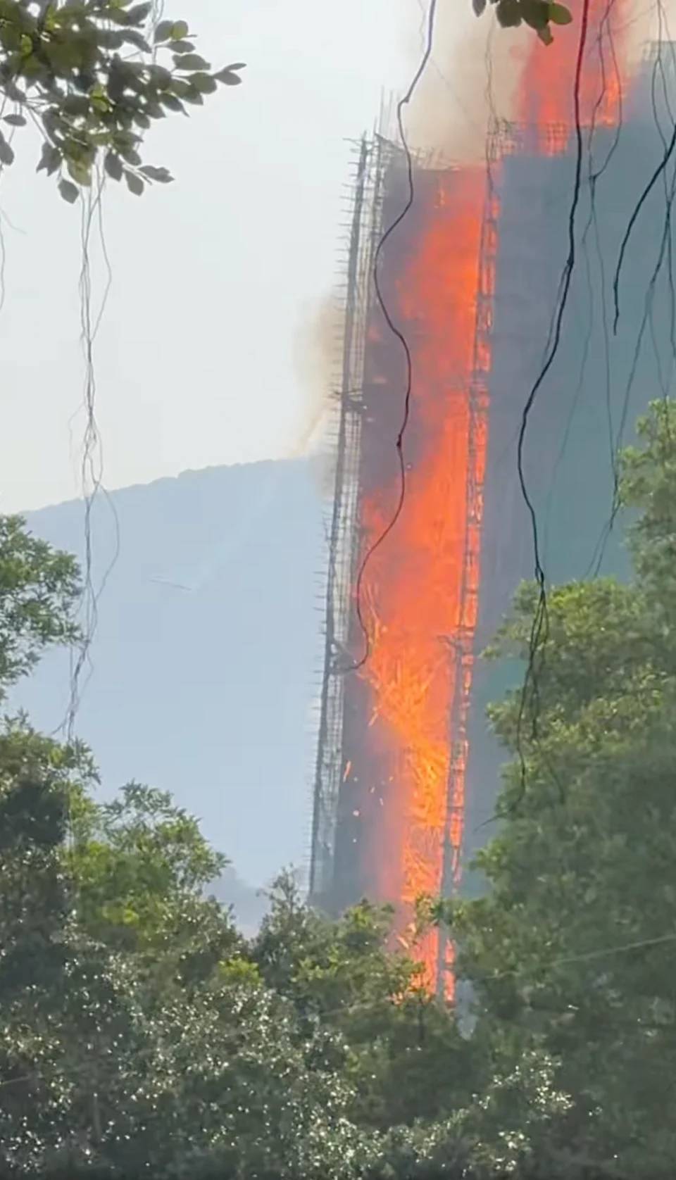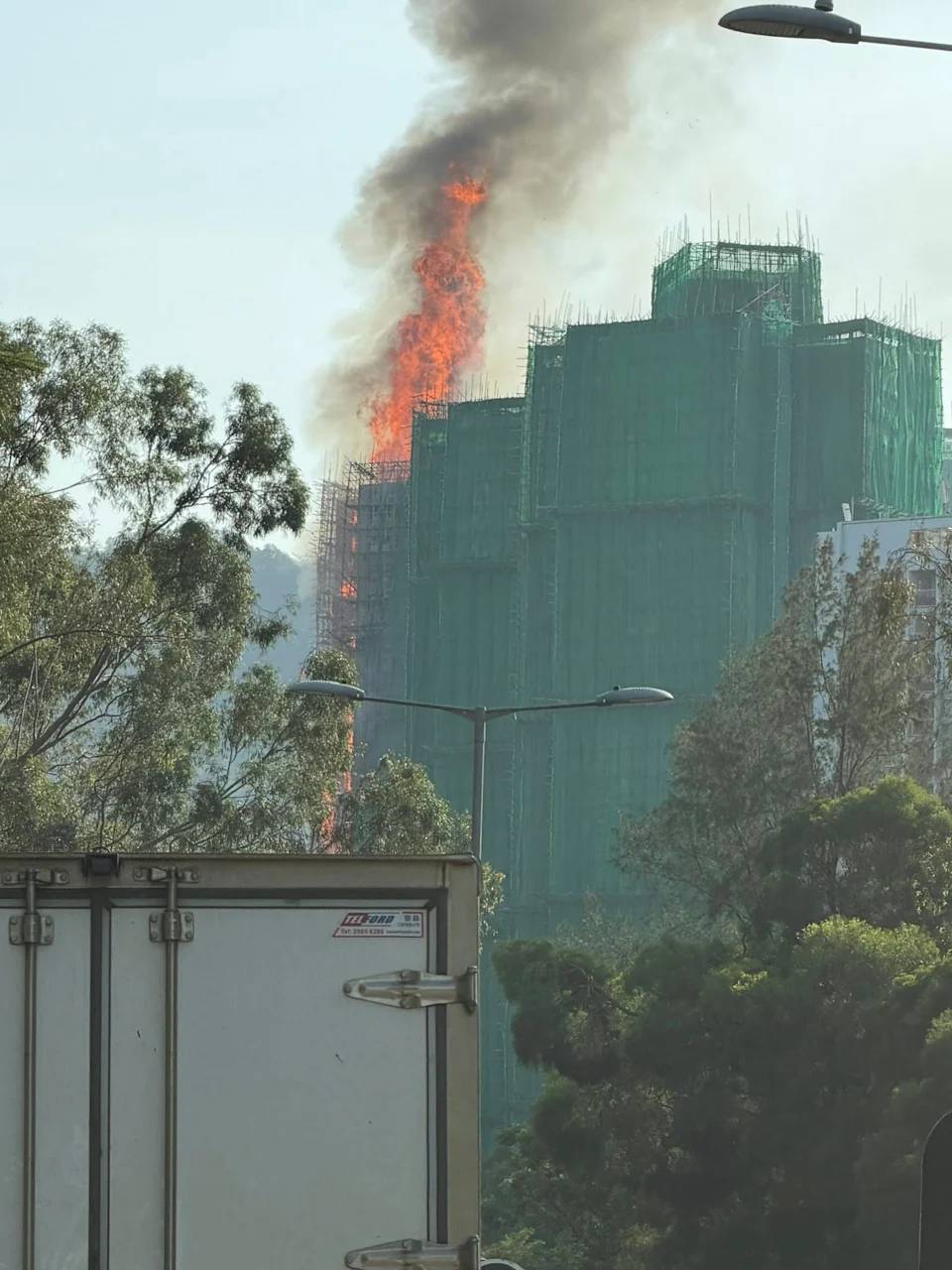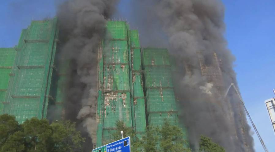 宏福苑外牆棚架突然起火 火勢猛烈蔓延頂層