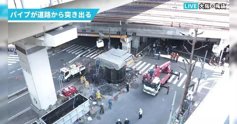 大阪梅田巨型鋼管破土而出 目擊者驚呼像電影場景